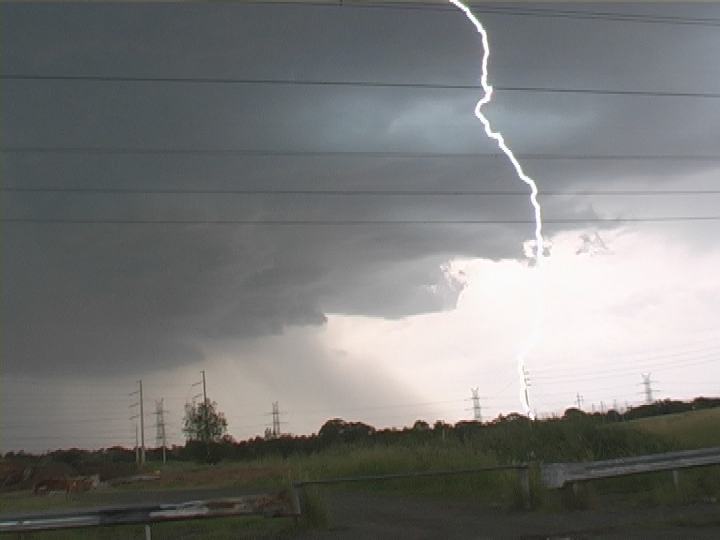 This day may have evolved into a local chase but it turned out into an extraordinary event. With moderate wind shear and high CAPE environment, it was anticipated that storms would develop over the ranges and drift towards the coast. The atmosphere was a little moist further north though higher CAPE and storms would develop earlier. It was a test of patience, when does one take off and chase. Weak anvils began to hover over the Sydney basin about 2pm . After the next observation, I was astonished to find a powerful side anvil!Wow!! No hesitation I grabbed the gear and was off. All the gear except my wallet and I was low on fuel turned back grabbed the wallet. The intercept was not difficult and I targeted the region near Penrith. A rainfree base indicated a possible wall cloud region bolts pulsing from this region. By the time I headed out to Plumpton, it was evident the storm was on the move meaning that an escape route and positioning was not too far way. I chose a quiet road in the back of Mt Druitt. With so much adrenalin, I was out in a flash and shooting video. What I did not realise was that the storm was about to go ballistic! Besides those erratic bolts shooting out of the anvil above me within a kilometre or so, the main core began sending powerful bolts at a frequency one rarely observes. Click here for all stills listed online of this event.