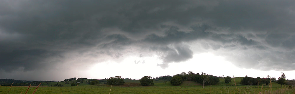 We kept heading ENE along the Eltham Road then up to Clunes across the valley from our homes at McLeans Ridges and Wollongbar. It was a bit of a worry knowing that destructive winds and hail were pounding the area. My wife phoned just after 4pm, freaked out as masses of hail 2 to 2.5cm diameter pounded the house, but the winds were the main problem, bringing down enormous trees throughout the area and cutting power.