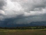 We were also a little worried that it would turn NE enough to straight over Glen Innes, and if it was a supercell like we were wondering, that would not be good news for the town! So racing through the streets 10 minutes later, well�however much racing you can do in 50 zones - we finally got to the open section of the Gwydir Hwy and roared out of town to get to a good vantage point. Occasional glimpses of the structure on this side of the storm were looking very promising!