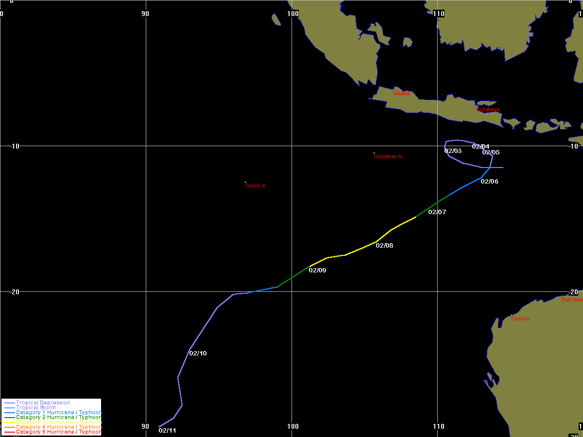 JTWC data obtained from the Naval Pacific Meteorology and Oceanography / Joint Typhoon Warning Centre, Hawaii
